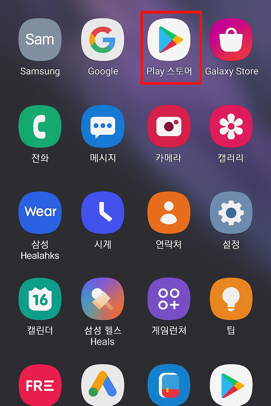 - 안드로이드에 기본적으로 내장되어있는 플레이스토어를 클릭합니다.
