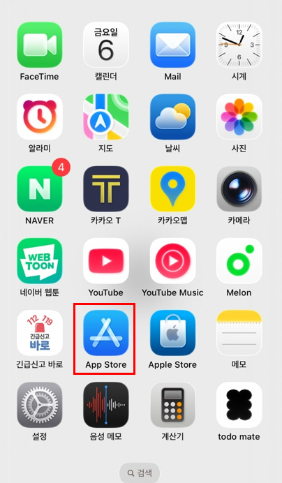 iOS에 내장되어 있는 App Store를 실행합니다.
