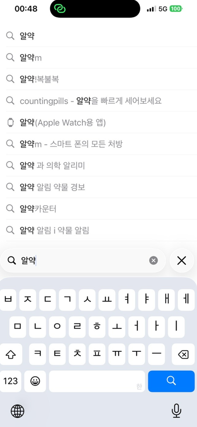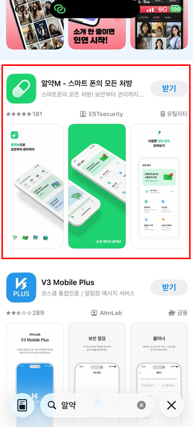 App Store 검색창에 알약 또는 알약M을 입력합니다.